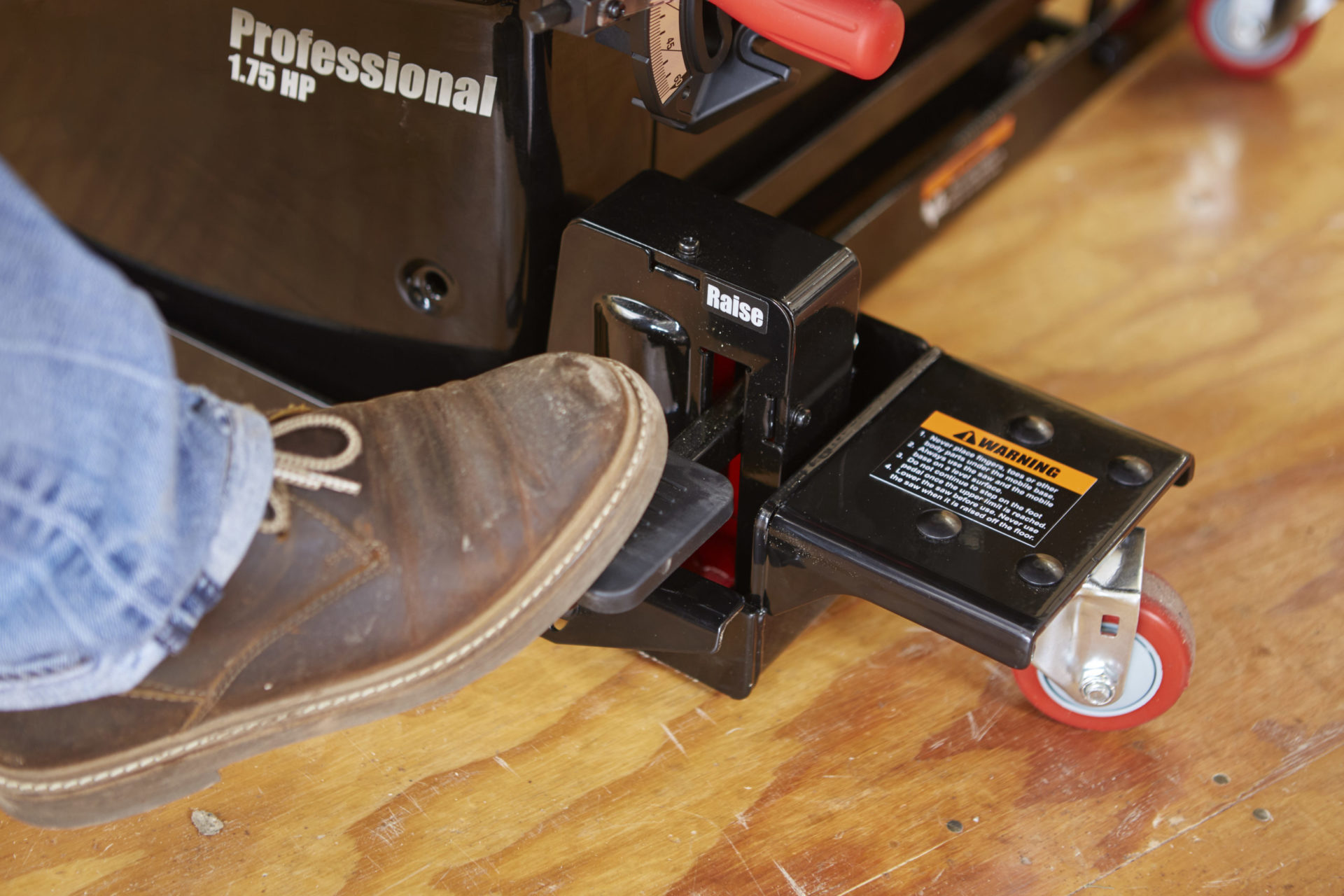 MB-PCS-INDThe easiest, smoothest-moving base available for the Professional Cabinet Saw. With four independent casters, you can quickly and easily move your saw into a corner and out of the way when not in use. No need to worry about wheel brakes: when disengaged the saw rests firmly on the ground, setting the saw’s weight directly on the floor, not the wheels. Maximize compatibility with SawStop Options, from In-Line Router Tables to the Sliding Crosscut Table and more. The 1,000 lb capacity supports the saw and extention table, no additional extention hardware needed. No flimsy wheel brakes to deal with and non-marring polyurethane wheels to keep your floors in tact. Assembly includes kit to adapt Industrial Mobile Base for use with Professional Cabinet Saw.